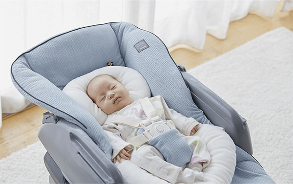 寝かしつけのベッドからお食事のときのハイチェアまで。