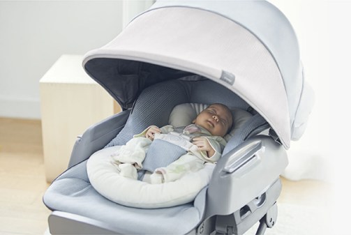 遮光性に優れ、角度を自由に調節できる幌が、赤ちゃんの眠りに理想的な暗さをつくります。